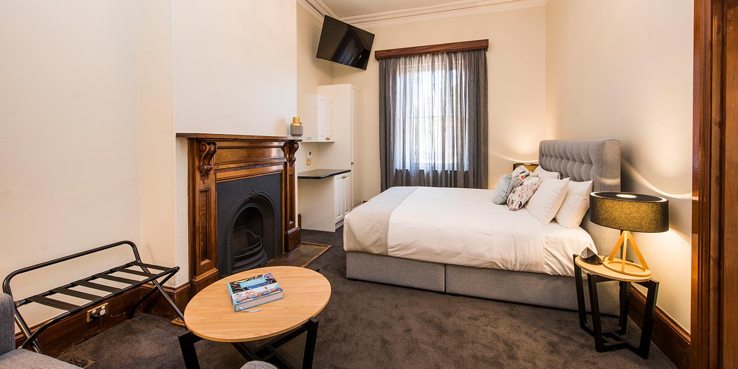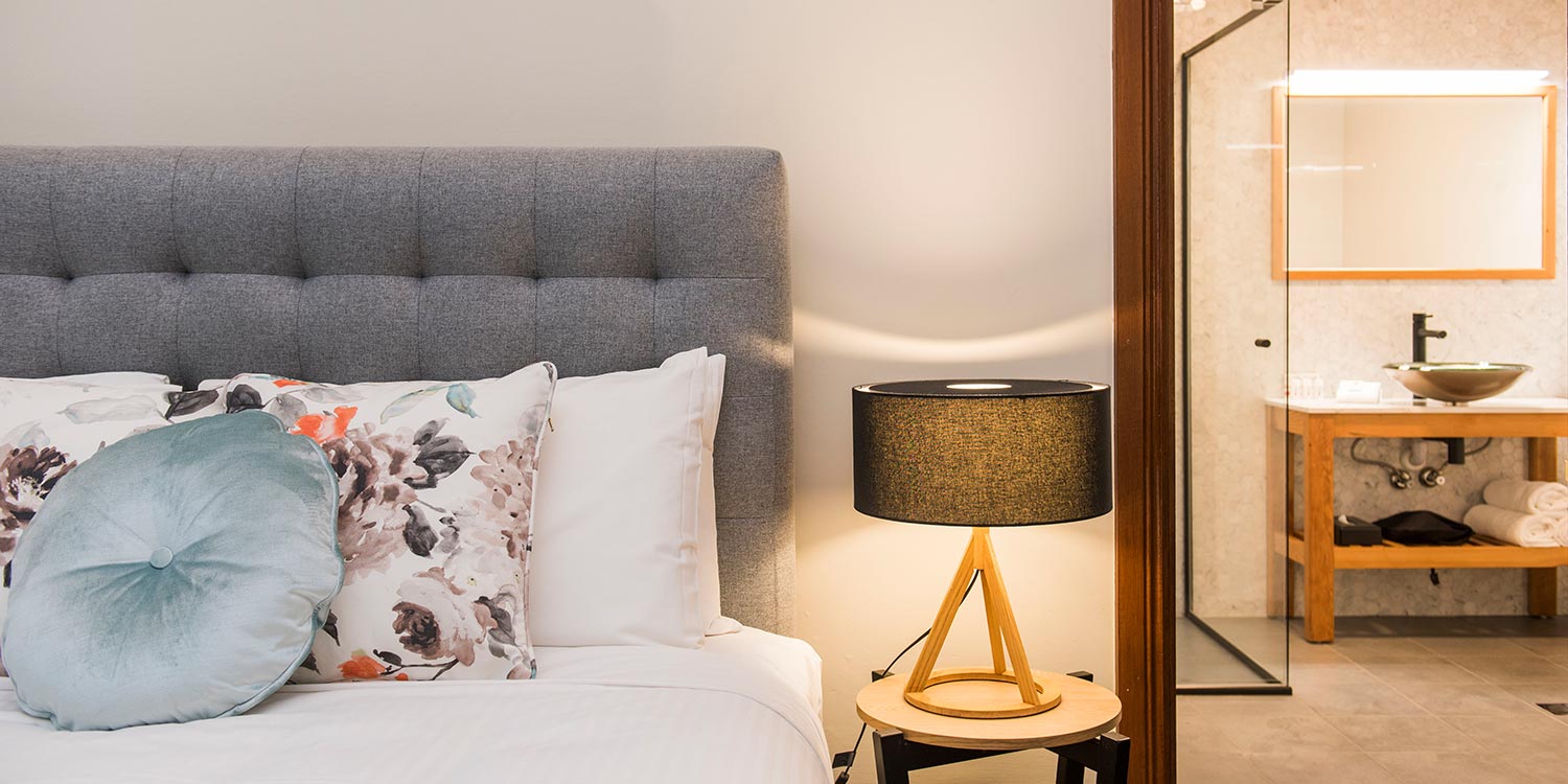 The spacious and beautifully designed ensuite features an exotic bamboo ceiling and another one of the hotel’s gorgeous handmade timber vanities. All guests are welcome to enjoy the surrounding views from the upstairs open verandah.